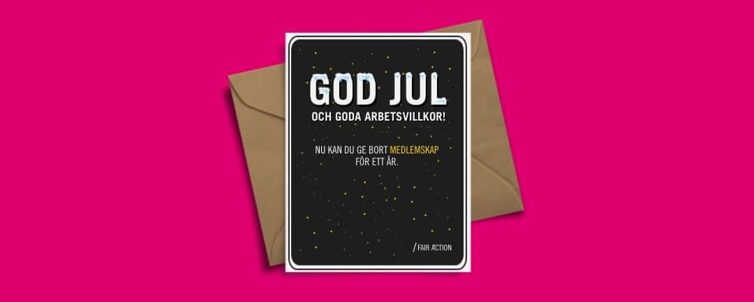 God jul, gott nytt år och goda arbetsvillkor! Inför årets julfirande gör vi det möjligt att ge bort ett medlemskap eller en gåva hos Fair Action. Bra va? Här nedan hittar du information om hur du laddar ner gåvokortet som innehåller årets viktigaste rim.